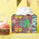 Le rétro tiki mignon a inspiré l'enveloppe de cadeau. Masques de Tiki et filles de danse polynésienne mignonnes dans un style kitschy moderne de la moitié du siècle, dans brun, de corail, le gree, et la sarcelle d'hiver.