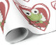 Une conception mignonne de Saint Valentin comportant un cupidon de grenouille sur un grand coeur rouge sur le papier d'emballage cadeau de jour de Valentines.
