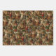 Il s'agit d'un design très chargé et coloré, avec un motif dense et répétitif d'illustrations vintage de Noël. L'image est remplie de divers éléments de vacances, y compris : anges cherubiques avec ailes, certains tenant des instruments de musique ou gestuelle. Enfants habillés en elfes (ou personnages festifs similaires) en tenues rouges et vertes. Nombreux ornements et décorations, tels que des cloches en verre, cloches et pinecones finement conçus. Feuillage festif, y compris les branches de houx, de mistletoe et de pin. De longs fils de perles blanches qui tissent tout au long du design. Le style général rappelle les cartes de voeux de Noël de la fin du XIXe ou du début du XXe siècle ou le papier d'emballage, avec une esthétique riche, nostalgique et un peu surchargée.