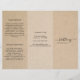 Dépliant rustique à trois volets avec un fond en papier brun faux. La couverture comporte votre nom d'entreprise avec des fioritures dans une police de caractères cursifs élégants ainsi que votre titre ou service. Le panneau arrière contient vos coordonnées et le panneau intérieur comporte deux en-têtes et des zones de texte. L'intérieur comprend de multiples modèles pour les informations sur votre entreprise sur les panneaux extérieurs et une liste de prix dans le panneau central. Ce design simple et féminin est idéal pour une entreprise d'artisanat fait main.