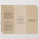 Dépliant rustique triptyque avec un fond en papier brun faux. La couverture comporte le nom de votre entreprise avec des fioritures dans une police de caractères cursifs élégants ainsi que votre titre ou service. Le panneau arrière contient vos coordonnées et le panneau plié interne comporte deux en-têtes et des zones de texte. L'intérieur comprend de multiples modèles pour les informations relatives à votre entreprise sur les panneaux extérieurs et une liste de prix dans le panneau central. Ce design simple et féminin est idéal pour une entreprise d'artisanat fait-main.