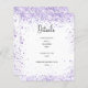Un arrière - plan blanc décoré de poussières de parties scintillant violette couleur lavande. Personnalisez et ajoutez les détails de votre mariage. Lettres de couleur noire.