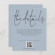 Un rapport qualité-prix BUDGET alternative sur une taille plus petite 4,5 x 5,6" semi-brillant poids 110lbs, qui est d'une épaisseur similaire à une carte postale (cependant ne convient pas à l'utilisation comme carte postale.) VEUILLEZ NOTER qu'il y a UN invitation par feuille. Détails du mariage Code QR Script Dusty Blue. Faites savoir à vos invités des détails tels que l'itinéraire et les informations d'hébergement pour votre mariage lorsque vous envoyez leurs invitations. Ce design élégant a mis en place une grande typographie stylisée pour l'en-tête Les détails et le reste du texte peuvent être facilement personnalisées à vos mots avec votre code QR de site Web. Vous pouvez choisir n'importe quelle couleur de votre choix pour le texte et les couleurs arrière - plans des deux côtés via l'option customiser plus loin.