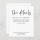 Informations simples sur le Mariage de script noir et blanc. Une alternative de prix budgétaire. Disponible dans un STOCK CARTE SEMI GLOSS 110 lb qui est l'option par défaut (recommandé pour les invitations), OU un STOCK PAPIER THINNER SATIN FINISH 80 lb (idéal pour les boîtiers). Les enveloppes sont en option et légèrement plus grandes que la taille de la carte. Une élégance simple pour donner à vos invités les informations dont ils ont besoin pour votre jour de mariage, avec une typographie en noir pour le titre principal Les détails complétant le reste du texte que vous pouvez facilement personnaliser.