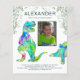 Dinosaur 8ème anniversaire invitation budget fête avec modèle photo. Célébrez votre T-Rex en rugissant huit ans avec cette amusante invitation d'anniversaire colorée à l'aquarelle de dinosaure de la jungle préhistorique. Ajoutez une photo de votre nature bientôt à l'âge de 8 ans et tous les détails de votre fête pour créer un T Rex rugissant et stegosaurus mignon personnalisé jungle jurassique 8e invitation avec feuillage vert. Dinosaure, oeuvre originale de l'artiste Catherine Sweetman