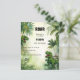Une invitation à célébrer l'anniversaire d'un garçon. Une jungle, un arrière - plan de forêt tropicale et deux dinosaures, Tyrannosaurus. Personnalisez et ajoutez un nom et des détails du parti. 1 feuille = 1 invite imprimé bord à bord.