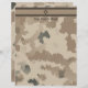 Un drapeau israélien marron et bronzé, de style militaire, "sobre", sur un motif camouflé brun et bronzé dans le désert, avec un peu de vert. Ajouter votre propre texte