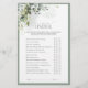 Jeu de douche nuptiale moderne et élégant "Over or Under" avec des feuilles botaniques vert gris luxuriants et des eucalyptus, et bordé d'un vert gris-bleu d'eucalyptus pâle. Personnalisez vos questions en noir doux, accentué par une belle calligraphie à la main moderne. Partie d'une suite coordonnée. Voir la suite ici : https://www.zazzle.com/collections/elegant_eucalyptus_green_botanical_bridal_shower-119330045467288535 Contacter le concepteur pour les produits correspondants. Copyright Anastasia Surridge pour Invitations élégants, tous droits réservés.