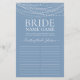 Cette belle lumière bleue poussiéreuse Bride Name Game nuptiale feuille de jeu de douche est simple et charmant - parfait pour toute douche. Ce jeu amusant et facile est sûr d'apporter beaucoup de rire à toute douche nuptiale! Donnez simplement un drap à chaque invité (n'oubliez pas les stylos) et laissez le plaisir commencer! Vous serez surpris du nombre de longs mots que les gens trouvent en utilisant le nom de la mariée. En quelques secondes, vous pouvez voir comment votre feuille de jeu va apparaître. Sélectionnez simplement Personnaliser ce Modèle et tapez le nom de la mariée.