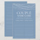 Cette belle lumière bleue poussiéreuse Couple Name Jeu nuptiale feuille de jeu de douche est simple et charmant - parfait pour toute douche. Ce jeu amusant et facile est sûr d'apporter beaucoup de rire à toute douche nuptiale! Donnez simplement un drap à chaque invité (n'oubliez pas les stylos) et laissez le plaisir commencer! Vous serez surpris du nombre de longs mots que les gens trouvent en utilisant les noms de la mariée et du marié. En quelques secondes, vous pouvez voir comment votre feuille de jeu va apparaître. Sélectionnez Personnalisez ce Modèle et tapez le nom de la mariée et le nom du marié.