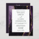 Faire-part de mariage variés à pierre d'agate violette et dorée élégants. Strates de pierre à paillettes dorées fausses. Mise en valeur de la police de caractères script avec une police de nom serif facile à lire. Facile à ajuster pour vos propres besoins de mariage.