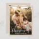 Carte de Noël photo moderne avec un design simple et minimal avec "Joyeux Noël" dans une élégante typographie de script sur votre photo préférée entourée d'une bordure nette beige clair. L'avant a une superposition de dégradé pour aider le texte à se démarquer, qui peut être supprimé dans l'outil d'édition de conception, si vous le souhaitez. Le dos a un collage photo avec trois photos avec votre message personnalisé.