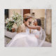 Budget Paysage moderne et élégant Horizontal Four (4) Photo Enregistrer la date Mariage avec typographie manuscrite. L'aimant d'invitation de date inclut la typographie de script et le design chic et simple auquel vous pouvez ajouter votre photo de fiançailles customisée à.