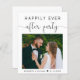 Hébergement économique ou faire-part mariage privé et invitation à la réception de mariage. Le devant présente votre photo de jour de mariage, "Happily Ever After Party" dans un mélange de typographie simple et d'un script élégant avec des swashes et vos noms et la date mariage réunis avec un coeur. Au verso, personnalisez votre message et les détails de l'invitation de réception et ajoutez vos noms dans un script de type signature.