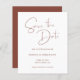 Créez votre propre style moderne mariage célébration enregistrer les dates. Une belle calligraphie de style écriture fine "merci" message texte contre le blanc sur le devant... couleur arrière - plan rougeâtre foncé couleur rouille rouille sur le dos. Découvrez la variété des couleurs et des styles de papier pour ce design mariage minimaliste moderne. Customisez la couleur arrière - plan de la terre cuite de rouille foncée pour correspondre à votre palette de couleurs mariages.