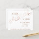 Style de budget Enregistrer la date. Ce design dispose d'une police de calligraphie à la main élégante avec des fleurs tourbillonnantes et vos informations dans un modèle de police de style Art Déco. Le look rose Gold est utilisé sur le texte de Calligraphie avec un arrière - plan blanc (la couleur peut être changée). Graphiquement conçu par Audrey Jeanne Roberts, artiste et designer de renommée internationale, copyright.