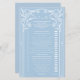 Le "Light Blue Romance and vintage sophistication" est une étonnante gamme de papeterie mariage qui respire le raffinement et l'amour. Cette collection comprend des invitations, des cartes RSVP, des cartes de menu et des cartes de place, le tout avec un mélange exquis de typographie moderne et d'élégance classique. L'arrière - plan bleu doux aux motifs floraux blancs complexes crée une atmosphère sereine et enchanteresse. Les noms sont écrits dans une police moderne et audacieuse, soulignant l'importance de l'événement. Le reste du texte est dans un script classique et gracieux, créant un contraste harmonieux. Dans l'ensemble, ce design allie magnifiquement typographie moderne et élégance intemporelle, ce qui en fait l'endroit idéal pour toute célébration mariage romantique. Divertissez vos invités avec un jeu amusant de 'She Said, He Said!' Ce jeu passionnant invitation vos invités à répondre à des questions amusantes et intrigantes sur vos préférences, souvenirs et opinions. Discussions amusantes et découvertes extraordinaires vous attendent dans chaque jeu ! F004