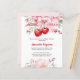 Un élégant arrière - plan blanc, décoré d'un arc rose avec des cerises et des fleurs roses. Personnalisez et ajoutez un nom et des détails du parti. Texte : Elle est la cerise sur le dessus Dos : arrière - plan rose doux. 1 feuille = 1 invite imprimé bord à bord.