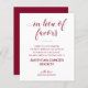 Ces charmants draps blancs et bordeaux "en lieu et place des faveurs" sont une merveilleuse façon de faire savoir à vos invités que vous avez fait un don à votre organisme de bienfaisance préféré en leur honneur le jour de votre mariage. Une partie de la collection Alejandra.