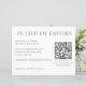 Voici notre carte mariage exquise ! Conçu avec une typographie minimaliste créant un look sophistiqué et intemporel, cette carte enchanteresse porte un message sincère. Invitant chaleureusement vos invités à prendre part à votre initiative "Au lieu de Faveurs", il symbolise l'importance de rendre en retour. Découvrez le mélange parfait d'élégance intemporelle et de technologie de pointe. Notre carte intègre un code QR personnalisé, vous permettant de créer une expérience unique et interactive. Entrez simplement l'URL de votre code QR, et regardez vos invités immergés dans l'impact de votre cause choisie. L'utilisation d'un code QR sur une carte "au lieu d'une carte de faveurs" peut varier en fonction de vos intentions et objectifs spécifiques. Voici quelques objectifs communs pour l'utilisation d'un code QR dans ce contexte : 1- Fournissez des informations : Avec une simple analyse, vos invités peuvent accéder à des détails supplémentaires sur la cause que vous supportez. Découvrez sa mission, comprenez l'impact qu'elle engendre et apprenez comment leurs contributions seront utilisées. Laissez-les se lancer dans un voyage de connaissance et d'inspiration. 2- Diriger les invités vers une page de don : Grâce à la puissance du code QR, les invités peuvent contribuer de manière transparente à votre organisme de bienfaisance ou à votre cause. En établissant un lien direct vers une page de don, il simplifie le processus et leur permet de faire une différence significative. 3- Partagez des histoires ou des témoignages : Plongez dans les récits personnels qui éclairent l'importance de votre cause. Liez le code QR à des vidéos ou des sites web présentant des histoires touchantes, des témoignages sincères et des expériences inspirantes liées à la cause que vous soutenez. Que leurs coeurs soient bougés et leurs esprits élevés. Tous les styles, couleurs et tailles de texte peuvent être modifiés selon vos besoins. Si vous avez besoin d'aide ou d'articles correspondants, n'hésitez pas à me contacter.