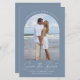 Enregistrez le Faire-part Date Budget Mariage. Un trait de stylo ultra-fin moderne script décontracté sous la photo encadrée d'arc. Disposition de style "do-it-self" entièrement polyvalente. Réglez facilement la taille, les couleurs, le style et le placement de tous les éléments. Note : Le texte incurvé doit fonctionner avec la plupart des noms, mais vous pouvez modifier ou modifier le texte standard en cliquant sur "Customiser plus loin".