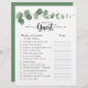 Cette douche de nuptiale d'eucalyptus trouve le jeu d'invité est parfait pour un wedding shower simple. L'aménagement comprend des branches et des feuilles d'eucalyptus botaniques élégants dessinés à la main dans des aquarelles.