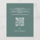 Save the date! Invitations amis et famille à votre mariage avec tout cela en un seul faire-part de mariage enregistrer les cartes de dates avec des feuilles botaniques eucalyptus. Ces invitations à des sites Web mariages de QR Code sont parfaites lorsque vous souhaitez garder toutes les informations mariages sur votre site Web, et aucune inquiétude sur les rsvp perdus. Ces espaces verts sauvent les invitations de mariage date sont la façon parfaite de simplement vos réponses à vos invitations de mariage, apporter des changements aux détails, dates ou le lieu est aussi facile que quelques coups clés. En plus de tenir les clients à jour sur les détails en ayant un accès facile à votre site Web mariage. Customisez avec vos noms, le site mariage QR Code et personnalisez avec les noms, la date et l'emplacement du mariage. DROIT D'AUTEUR © 2020 Judy Burrows, Black Dog Art - Tous droits réservés. Budget Botanical Green QR Code Enregistrer la date Carte postale