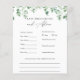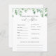 carte de conseil et de prédictions baby showers avec l'aquarelle eucalyptus et la verdure. Une façon amusante d'interagir avec les invités pendant votre baby shower. Correspond à la collection Eucalyptus and Greenery dans la boutique Adore Paper Co Zazzle.