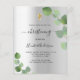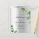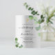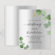 Un faire-part de baptême moderne et élégant, neutre en termes de sexe. Fond métallisé argenté faux décoré de verdure d'eucalyptus, brindilles. Personnalisez et ajoutez un nom et des détails. Lettres de couleur noire.