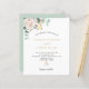 Un arrière - plan blanc chic. Décoré d'un blanc floral, de fleurs (pivoine) et de feuilles d'eucalyptus vert aquarellés, de sprigs, de verdure et d'un faux doré. Personnalisez et ajoutez vos noms et les détails du mariage. Lettres noires et dorées. Dos : couleur arrière - plan verte.
