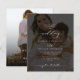 Ce design d'invitation de mariage élégant et économique présente une écriture calligraphique moderne associée à une typographie serif classique, le tout en blanc, créant une esthétique raffinée et romantique idéale pour les mariages contemporains. Le léger surimpression de photo noire donne un aspect rêveur et sophistiqué qui complète parfaitement les thèmes de mariage formels et semi-formels. La mise en page équilibre l'écriture manuscrite stylée avec des lettrages intemporels, offrant un mélange parfait de personnalisation et d'élégance. Idéal pour les couples soucieux de leur budget qui recherchent une invitation chic et intemporelle qui met en valeur leurs photos de fiançailles, ce design mélange sans effort le minimalisme moderne avec le style de mariage traditionnel, ce qui en fait un choix exceptionnel pour toute célébration romantique.