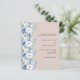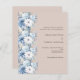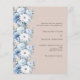 Un arrière - plan beige, décoré de fleurs bleues et blanches poussiéreuses. Personnalisez et ajoutez vos noms et détails. 1 feuille = 1 invite imprimé bord à bord.