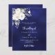 Pour une mariage élégante et romantique. Un bleu marine, un arrière - plan de couleur irrégulière décoré de fleurs blanches, rose. Personnalisez et ajoutez vos noms et détails. 1 feuille = 1 invite imprimé bord à bord.