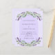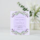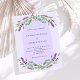 Arrière - plan violet décoré de fleurs de lavande violette, de verdure d'eucalyptus et d'arche. Personnalisez et vos noms et détails. 1 feuille = 1 invite imprimé bord à bord.