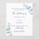 Un fond blanc, décoré de branches et de brins d'eucalyptus bleu poussiéreux. Personnalisez et ajoutez vos noms et les détails.
