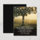 Faire-part de mariage rustique à petit budget avec un cadre de mariage champêtre en plein air brumeux, des lumières scintillantes en forme de guirlande romantique, un cœur sculpté sur le tronc de l'arbre avec vos initiales, et un modèle de mariage moderne.