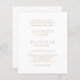 Elégant faux or tout en un faire-part de mariage budget avec un design simple et minimal avec les noms de la mariée et du marié dans une police serif traditionnelle et les noms de milieu et de famille dans un élégant script de calligraphie. Le dos contient vos coordonnées d'invités ainsi qu'un code QR en option. Si vous préférez, vous pouvez supprimer le code QR dans l'outil d'édition de conception. Un style classique qui conviendra à merveille à une mariage officielle.