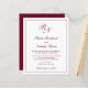 Faire-part de mariage budget de style traditionnel avec un design simple et classique avec vos deux monogrammes initiaux et vos noms dans une calligraphie élégante à l'intérieur d'une mince bordure. Tous les éléments de conception sont en bordeaux sur un arrière - plan blanc et peuvent être changés dans l'outil d'édition de conception. Ce design élégant est parfait pour un mariage formel.