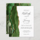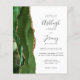 Le bord gauche de cette élégante faire-part de mariage moderne est orné d'une bordure en aquarelle vert de chasseur, recouverte d'une parties scintillant en faux or. Le texte personnalisable combine écriture manuscrite, copperplate et polices italiques en gris fusain sur un arrière - plan blanc. L'envers est assorti d'un design d'agate vert et or.