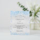 Arrière - plan métallique argent Faux décoré de coeurs bleus. Personnalisez et ajoutez vos noms et les détails du mariage. Lettres de couleur noire. Retour : ajoutez l'URL de votre site Web mariage au code QR pour plus d'informations et l'inscription RSVP. Cette invitation est également disponible dans notre magasin sans le code QR au verso