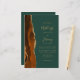Économisez le coût d'impression et d'envoi de cartes RSVP séparées avec cet élégant faire-part de mariage tout-en-un moderne. Le bord gauche est doté d'une bordure d'aquarelle couleur orange brûlée et rouille, recouverte d'une fausse parties scintillant dorée. Le texte personnalisable combine écriture manuscrite couleur or, cuivre et polices italiques sur un arrière - plan vert émeraude. L'envers offre de l'espace pour les détails mariages sur un arrière - plan vert solide, ainsi qu'un code QR que les invités peuvent scanner pour visiter votre site Web et RSVP.