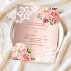 Pour un mariage élégant et romantique. Un fond dégradé d'or rose décoré de fleurs d'or rose et rose, de roses et de dentelle. Personnalisez et ajoutez vos noms et détails. 1 feuille = 1 invite imprimé bord à bord.