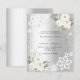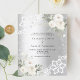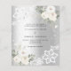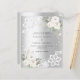 Pour une mariage élégante et romantique. Un arrière - plan faux argenté décoré de fleurs blanches, de roses, de dentelle blanche et de faux diamants. Personnalisez et ajoutez vos noms et détails. 1 feuille = 1 invite imprimé bord à bord.