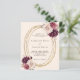 Pour une mariage élégante et romantique. Arrière - plan de couleur beige douce et crème, aux fleurs, beige moelleux et bordeaux. Un cadre ovale en faux or. Personnalisez et ajoutez vos noms et détails. Dos : beige. 1 feuille = 1 invite imprimé bord à bord.