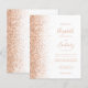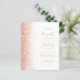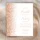 Le bord gauche de cette élégante faire-part de mariage moderne est orné d'une bordure en faux parties scintillant pêche. Le texte personnalisable combine écriture pêche, cuivre et polices italiques sur un arrière - plan blanc. L'envers présente un design de parties scintillant de pêche correspondant.