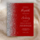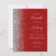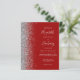 Le bord gauche de cette élégante faire-part de mariage moderne est orné d'une bordure en faux parties scintillant argenté. Le texte personnalisable combine écriture gris argenté pâle, copperplate et polices italiques sur un arrière - plan rouge crimson. L'envers affiche un design rouge et argent assorti.