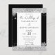 Parties scintillant Noire et Argent Invitations de mariage hivernal. Couleurs de police de script avec une police de nom serif facile à lire. Facile à adapter à vos besoins mariages.