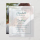 Cette faire-part de mariage simple et minimaliste présente le texte dans un élégant script bleu turquoise et des caractères sans serif, encadrés par un mince rectangle turquoise. Remplacez facilement l'exemple d'image par votre propre photo du couple. Un écran blanc sur la photo aide à faire ressortir le texte. La même photo apparaît sans écran à l'envers.