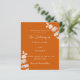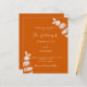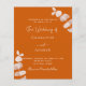 Arrière - plan orange brûlé, décoré de tiges d'eucalyptus, sprigs. Personnalisez et ajoutez vos noms et les détails. Dos : arrière - plan orange poussiéreux.
