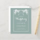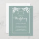 Faire-part de mariage bleu ardoise avec texte blanc et accents floraux le long de la bordure mince. Les couleurs et le texte sont entièrement modifiables en ligne en quelques clics, mais si vous avez besoin d'aide contactez le concepteur à ArtByLiz@gmx.com et la carte sera customisée pour vous sans frais supplémentaires.